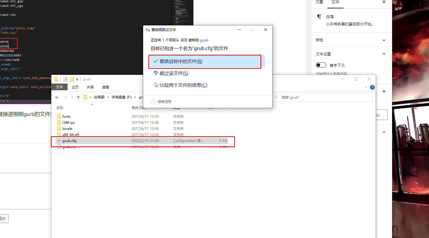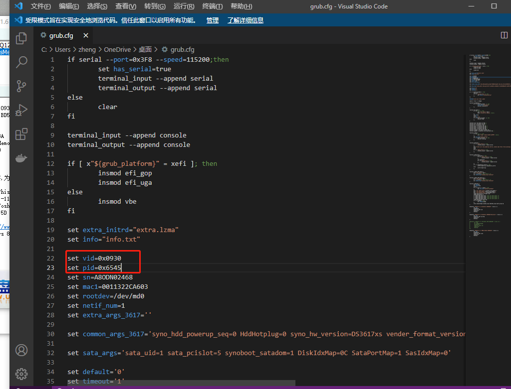 找到grub.cfg文件,拉到桌面使用及时本打开。