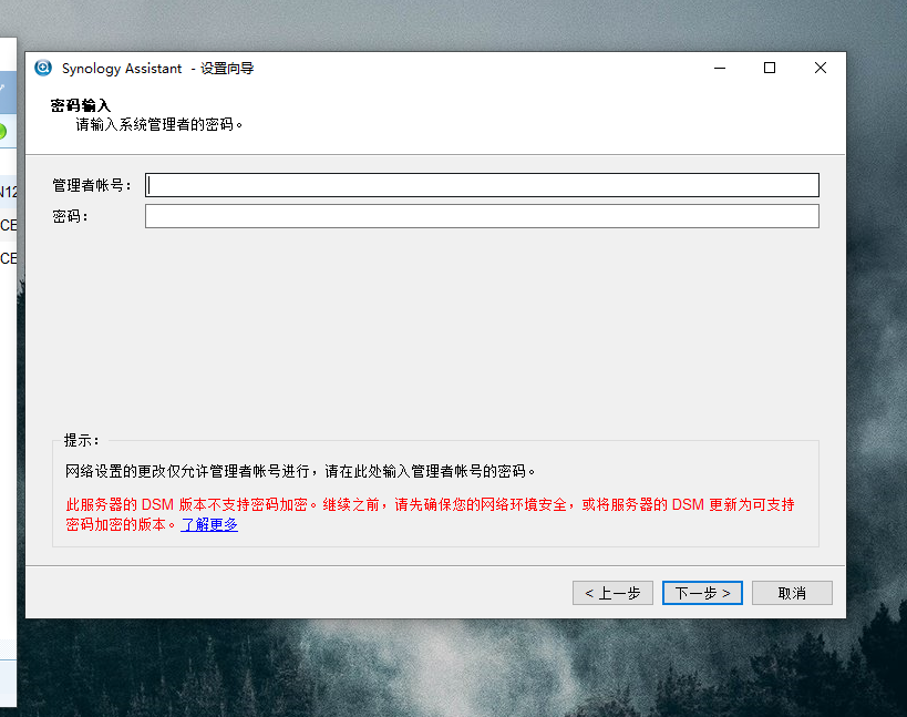 等待安装完成后,需要重新去搜索一下群晖主机,网页有可能出现如下状态(IP变更了所以无法刷新页面)