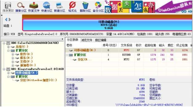 点击工具—搜索已丢失分区(重建分区表);