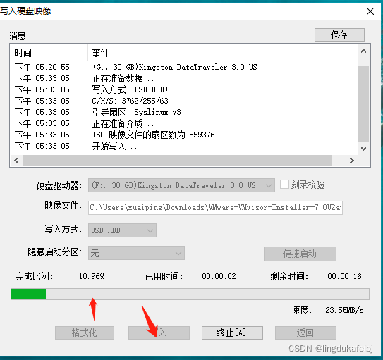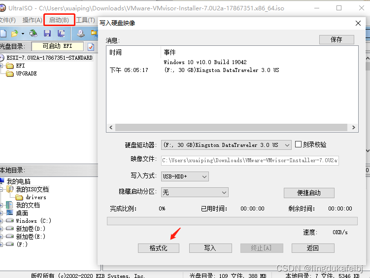 3、启动—>写入硬盘镜像文件—>点击操作界面的【格式化】按钮