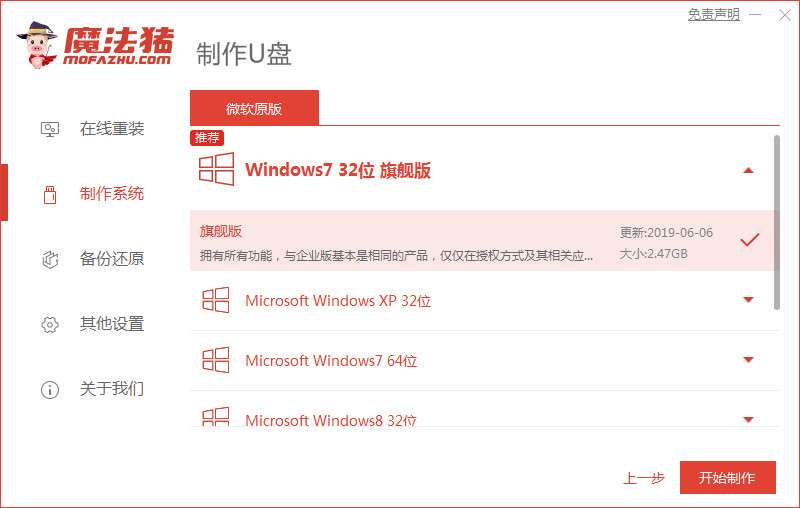 打开软件找到win7系统进行下载然后开始制作启动盘