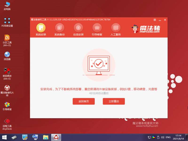7.系统安装完成,我们选择右侧“立即重启”选项。
