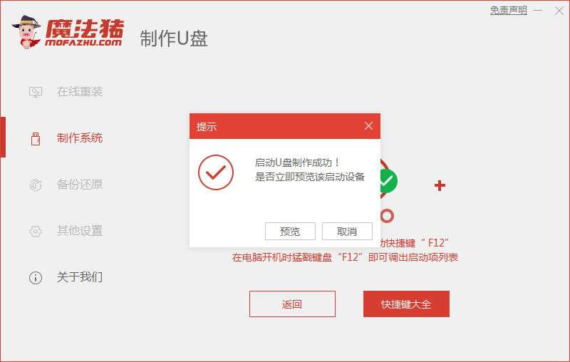 4.当启动盘制作完成后,直接将电脑重启操作。