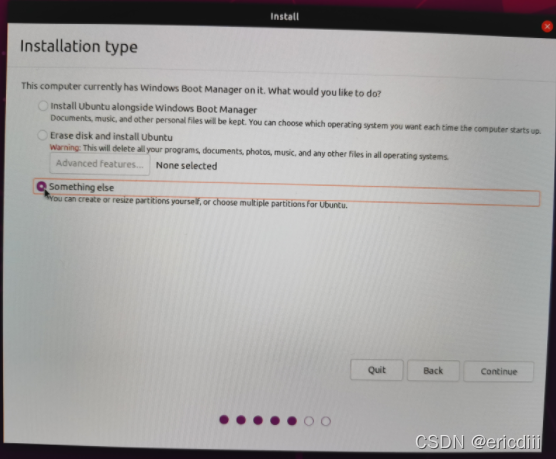 在安装类型时选择“Something else”进行手动分盘