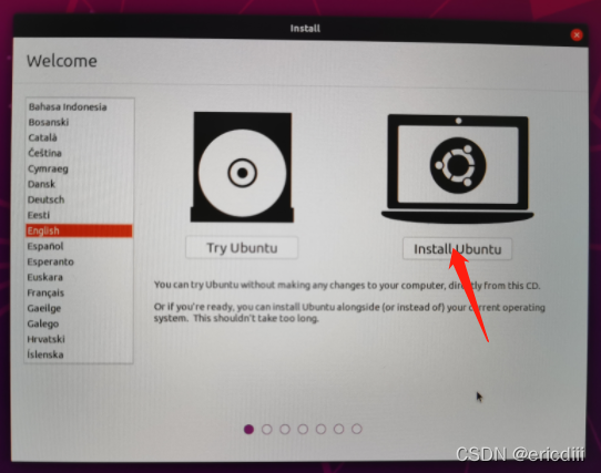 在系统选择页面点击“Install Ubuntu”