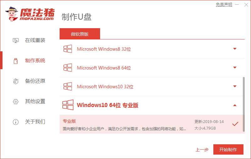 2.找到win10系统进行下载,我们点击“开始制作”选项。
