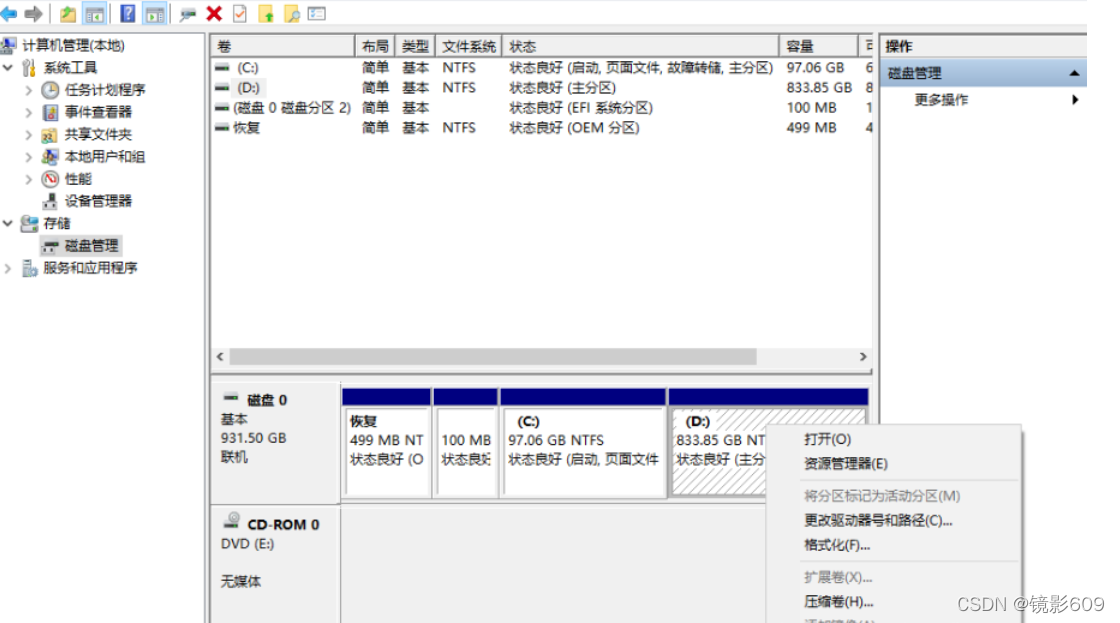 windows + x 选择磁盘管理,或者右击我的电脑->管理->磁盘管理。