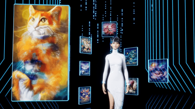 此外,百度AI数字人希加加也现场一展画技,成功完成了撒贝宁提出的“后现代感的色彩斑斓的朦胧的猫”的考题。