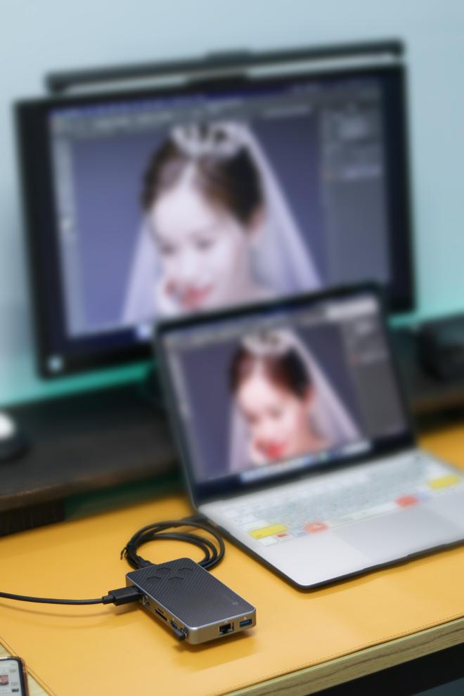 在实际使用中,它的HDMI接口对我来说非常实用,虽然我是个重型笔记本电脑用户,但是有时候,当你剪一些长视频时,我宁愿通过HDMI接口连接到显示器上,这样它会更高效地工作,而与此同时,我的大量材料和文件都放在我的硬盘上,这时,只需插在拓展坞上,可以直接使用和处理,值得一提的是,它支持4K30Hz传输,这对于经常处理高清晰度图像视频的工人非常有用。