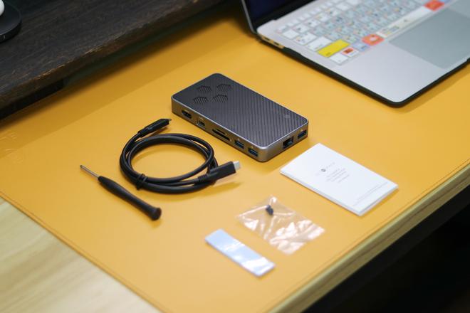 先来开个箱,SETMSPACE合金桌面10台开发码头采用白色作为主要包装,品牌LOGO的正面,背面是扩展码头产品的主要图片和详细的界面参数。打开包装,包括发展码头的主体,高速C-C数据线,螺丝刀,散热胶贴,固定胶钉,以及保险卡和手册。