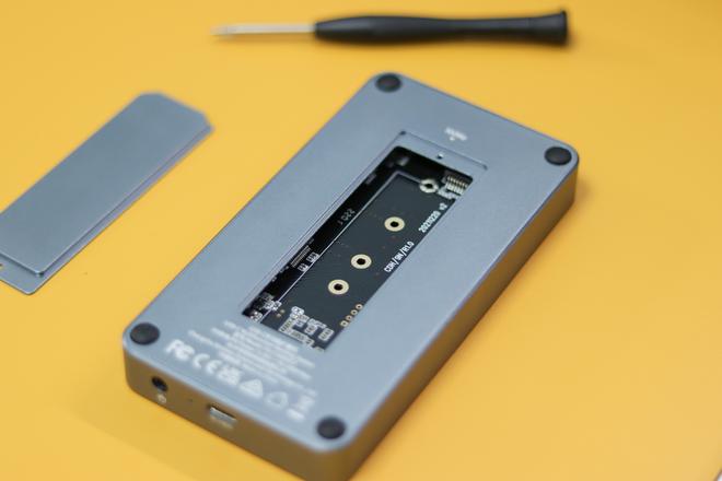 底部印有产品类型和制造商,当然,最重要的部分是SSD安装端口,一个螺钉安装SSD,支持最大2TB的扩展,兼容主流SSD,它还支持NVME协议,对M Key,B&M Key,2230,2242,2260,2280都能兼容。