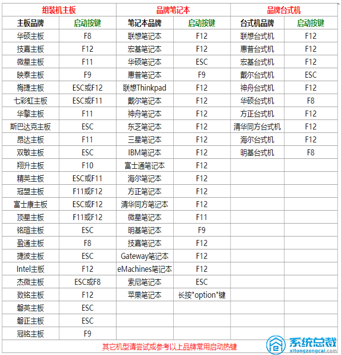 以上就是常见的u盘启动快捷键全集,只需了解到了对应的启动快捷键后,基本就可以开机按启动键直接进入到启动界面,选择u盘启动项进到修复或是重装系统操作了。
