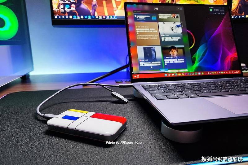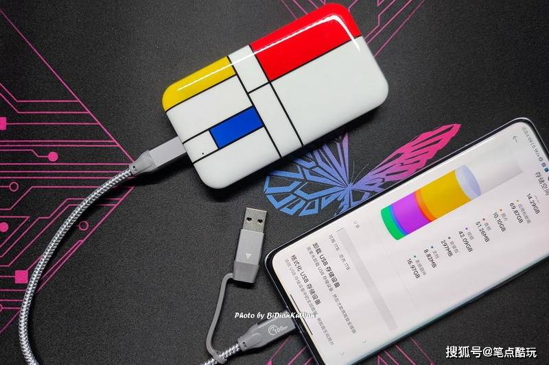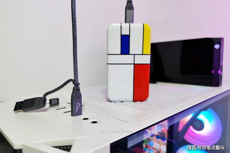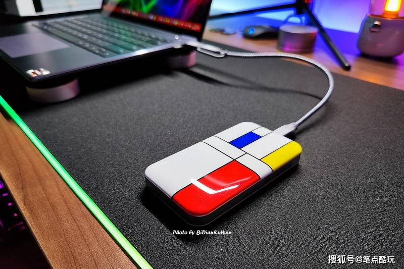 这种美学,如今被用在了PSSD(移动固态硬盘)之上,将锌合金外壳辅以汽车行业模内镶件注塑的高端IML工艺,蒙德里安的平面经典,便立体地呈现在一款1TB高速存储设备之上,任凭斗转星移,多彩隽永。