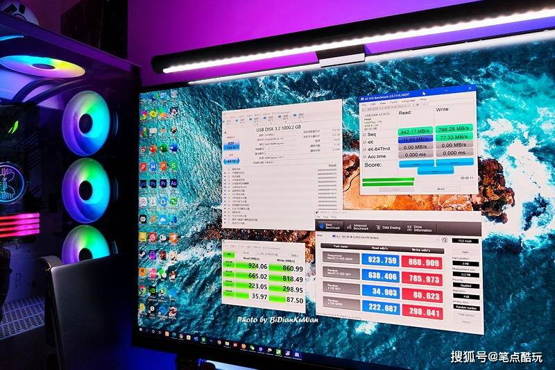 下面的图片显示了桌面机测试运行的测试场景。实际上,我正在我的桌面的USB-C3上。 当2 gen2接口不断使用运行时软件测试时,手触及PSSD表面的温度感触并不明显,只有微微的发热量,这与普通铝合金硬盘盒经常燃烧性能非常不同.官方的资料显示,硬盘盒里有加热头盔,在室温26°C下可保证50分钟的连续工作,硬盘箱温度保持在62°C左右,正常硬盘盒的温度往往超过80度,这是常见的“热手”状态。