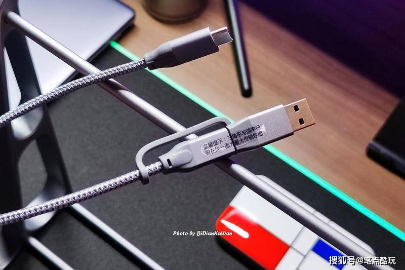 艺术感拉满的外观,搭配了用料扎实的Type-C to USB-A/Type-C二合一数据线,出厂贴纸提醒C+A接驳时,印有图标的一面朝向同侧时,为最大速率模式,丢掉这个贴纸之后,你可千万别忘了。