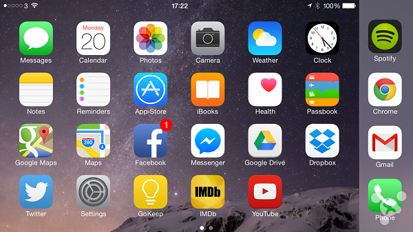 也许苹果不屑在 iOS 上带来 Android 那样的桌面插件和任意排列甚至是 WP 的“瓷砖”,但应该给用户一个选择。特别是大屏 iPhone 6 诞生后,若还是坚持强制桌面图标按顺序排列,想要单手按到最左上角的应用难度很大,这点上就不人性化了。