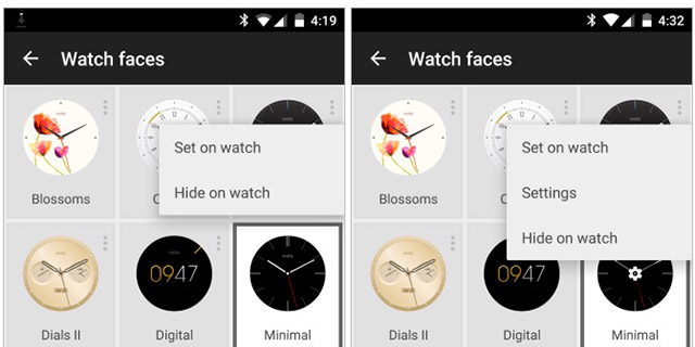 Android Wear是谷歌公司为智能手表专门打造的全新移动智能平台,最近,该平台迎来了一项更新。用过Moto 360的用户一定知道,如果想要自定义表盘,只能在智能手表中进行设置,但是这项更新发布后,用户会发现在所连接的手机中也出现了“设置”选项,这项改动允许用户在所连接的智能手机上对表盘进行自定义。虽然这只是一项微小的改动,但它极大地改善了用户的使用体验,这体现出了谷歌工程师们对其系统人性化的不断追求以及精益求精的态度。