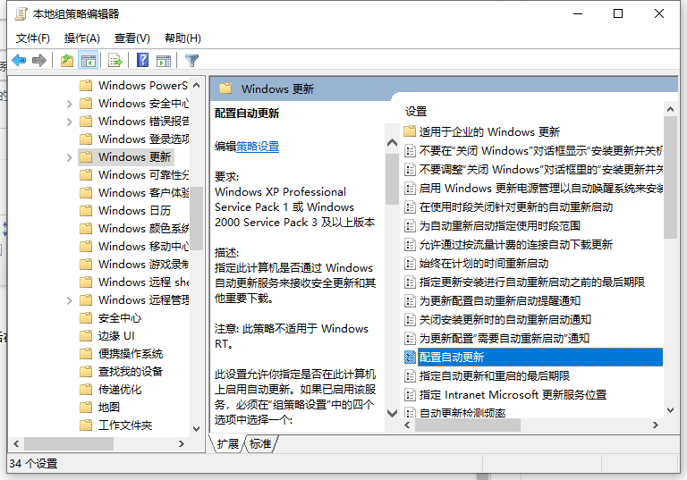 2. 在组战略编辑器中扩展 [计算机配置 - 管理模板 - Windows 组件 - Windows 更新]时,我们看到右侧的选项[配置自动更新]。