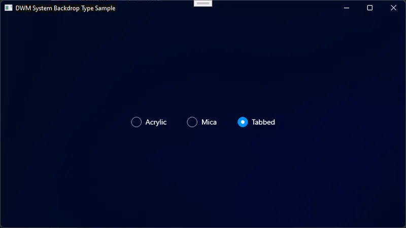 在浅色模式下,当您切换到 Tabbed 时, 将启用 Mica 类玻璃效果 。会有很多模糊的墙纸微软还提供了手动演示应用程序。展示这些API可能对现实世界应用产生的影响。他们在你下面记录下来了尽管我们觉得当我们进入黑暗模式时它更明显。