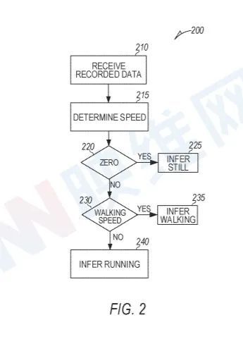 在另一个例子中,所记录的数据可能包含一个数字,表明用户在一段时间内的位置,所记录的数据还可能包括根据一段时间内的位置数据确定用户的速度,以及根据确定的速度推断行走或运行活动。