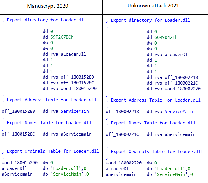这两个恶意软件还使用相同的可执行文件命名惯例。