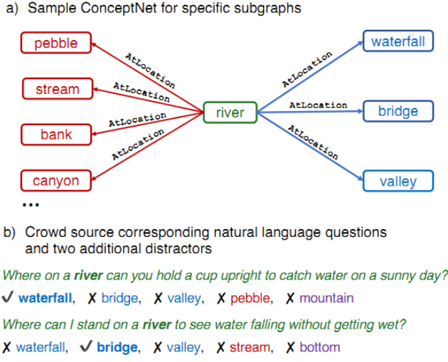 为解决这种常识问题,研究人员利用概念网来建立常识QA,这是一个常识专用数据集,需要模型来理解常识,以便成功解答问题。