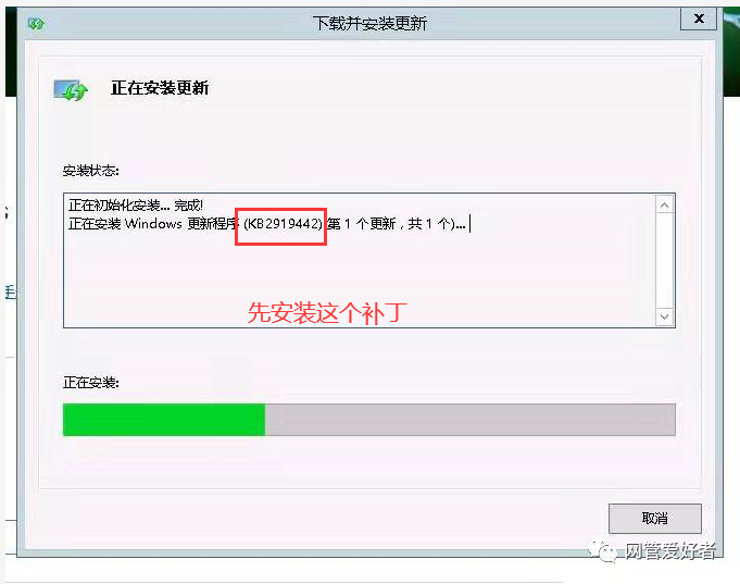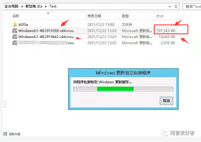 此 KB 2919355 补丁 微软 更新 690 MB 更大, 且双击难以安装下载 。