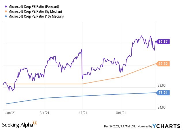 在某种程度上,人们可以认为,在过去10年中,微软公司以公平的速率扩张。该公司成功地转变为一个以云计算和移动服务为重点的大型技术公司,因此能够建立自己的技术。这在十年前是不可想象的。然而,市场普遍认为,当公司股票价值超过长期平均数时,投资者应考虑与估值(PE)回报有关的下游风险。