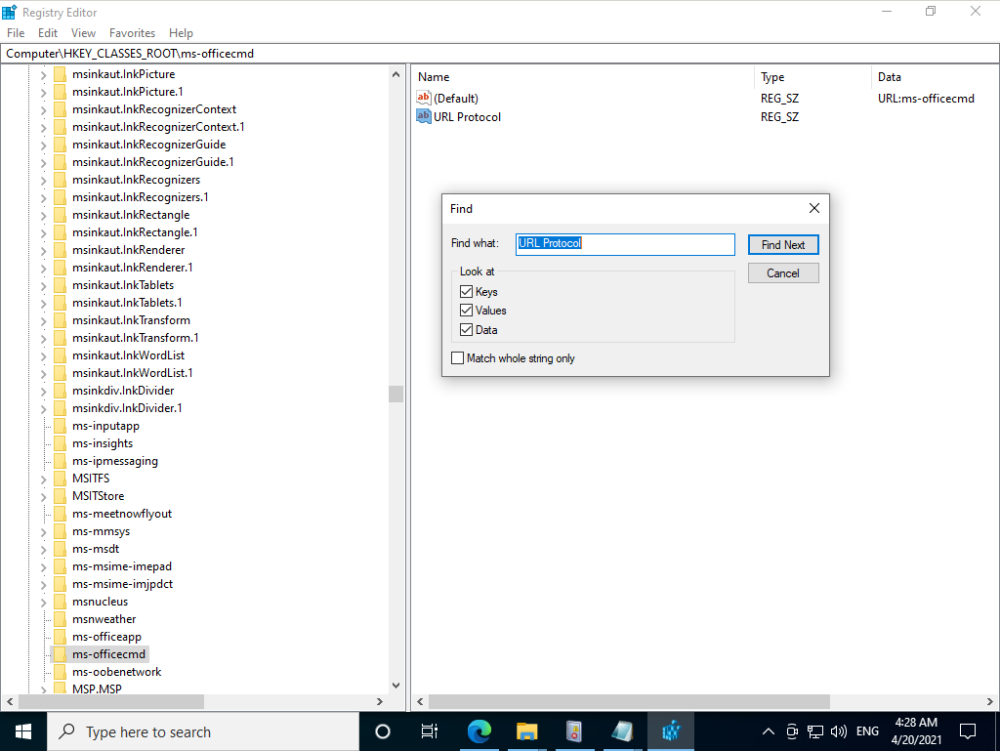 为研究目的确定注册的URI程序最容易的方法之一是在登记册中重复搜索“URL协议”: