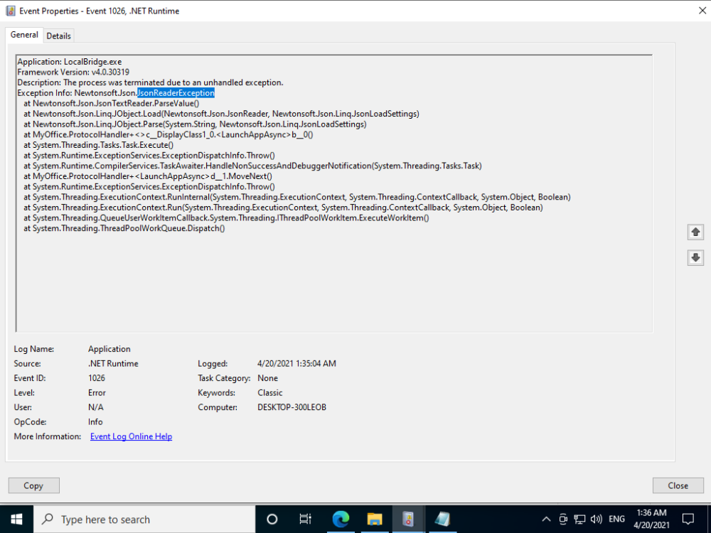 NET JsonReader Exception 在URI'ms-officecmd:无效时被抛出 。