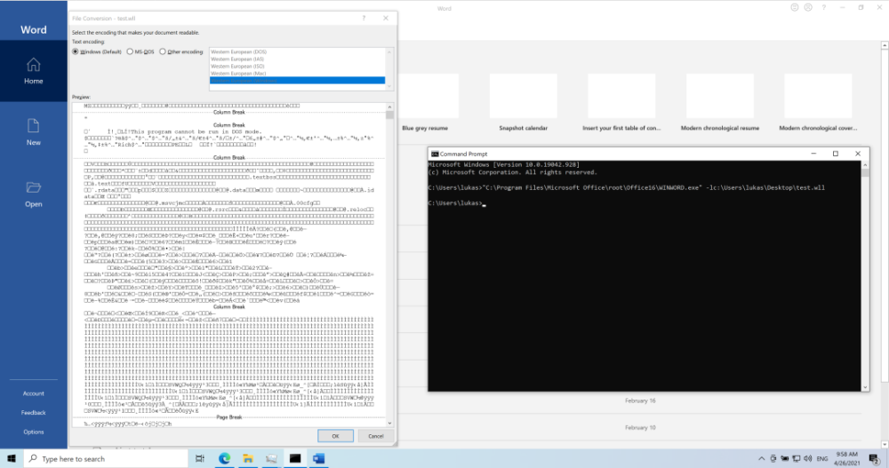 ms-officecmmd:程序的名称很快引起研究人员的注意:MS Office是一个相当复杂的应用程序包。有一些可以利用的遗产功能,还有很长的历史。最重要的是,最后用一系列“命令”缩略语结束这届会议。这表明注射变得更加复杂和危险。