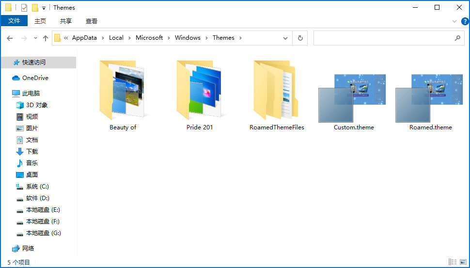 打开此文件夹中的 Microsoft WindowsThemes 文件夹,以便在 Win10 机器上找到主题安装文件夹 。