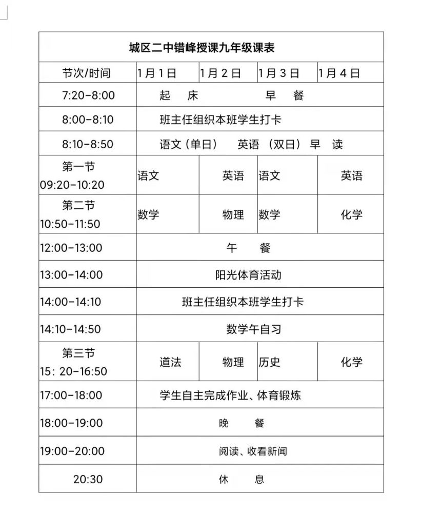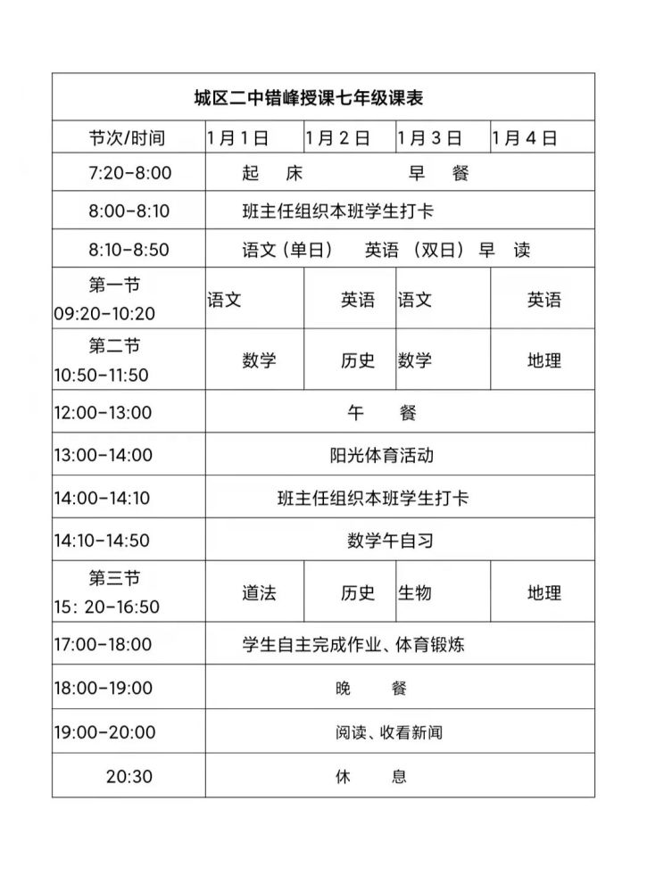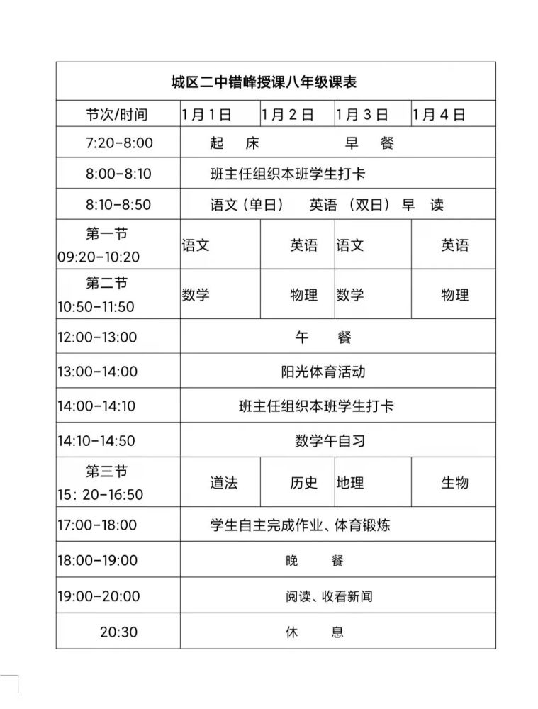 四、线上授课课表: