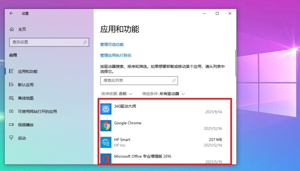 为了卸载不需要的应用程序,我们通常在应用程序和功能页面上使用[启动] -- -- [设置] -- -- [应用]。