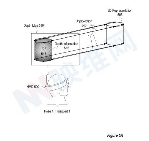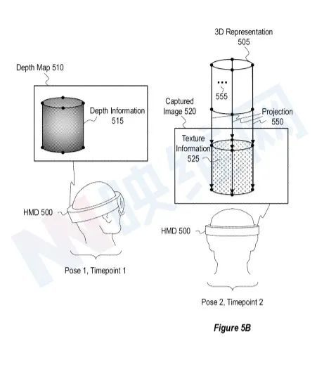 在一个实施例中,预测550业务可能是前述非项目业务540的反面。例如,预测550行动可被视为从三维505表示的三维点向位置相关点延伸光线。基于第2点,500头部显示器可能确认与位置有关的点为光学中心。2号位置允许你拍摄520张照片这500人的头能从3D点3D 显示光线, 3D点505到公认的位置相关点。光线还可以确定图象捕捉到的525条纹理信息的位置。然后,500头质量可与纹理电文识别点525和3D点505相连接,用于光投影。