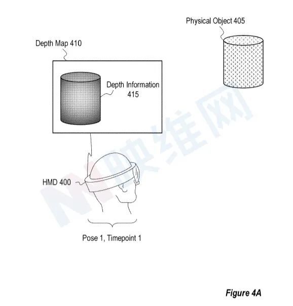 现在注意图4A,图4A用400张头部图片绘制了环境深度图,其中包括405件物理物品。音响照相机配对(例如任何类型的照相机)包含在400个头部图中。3D摄像头是用来收集 3D 图像的410号深度图是通过在400号总质量上进行深度计算(如3D匹配)生成的。