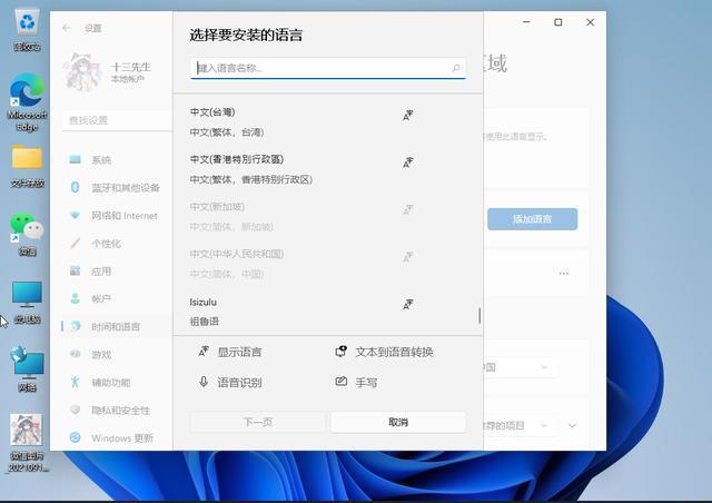 4. 然后点击额外语言,向下滚动,找到我们的中文,选择中文,继续前进。