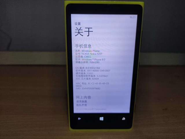 我花了90美元买一个月台我买了一个移动版本的 Nokia Lumia 920, Nokia Lumia 920T。到货后拿出来开机。显示3G应该移动的第一个迹象是闪烁。还有诺基亚的徽标可惜我们没有牵手的选择和传统的开关铃声。