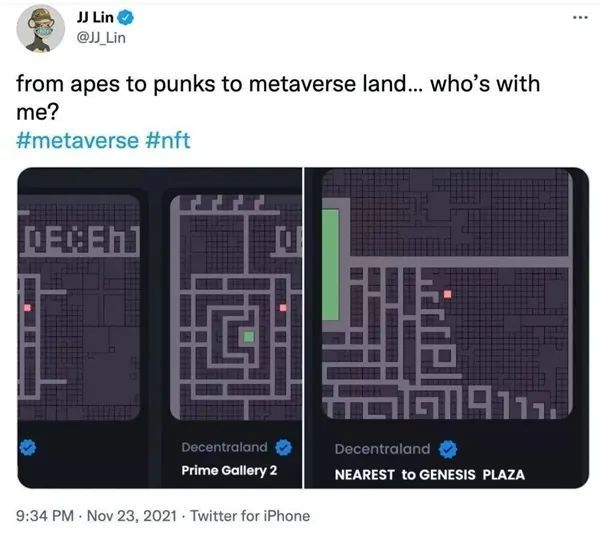 2021年11月23号一位知名歌手Hayashi Joon-ja在Twitter上也表示,他利用分权平台购买了三块虚拟土地。正式涉足元宇宙。据报告,这三件“地块”的费用大约为12,300美元(大约78,720,00里亚尔)。