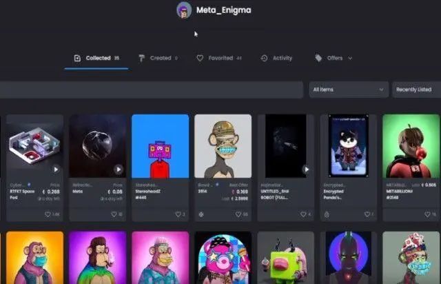 由歌手林俊杰(Lin Junjie)在交易网站Open Sea上购买的NFT商品的简况。