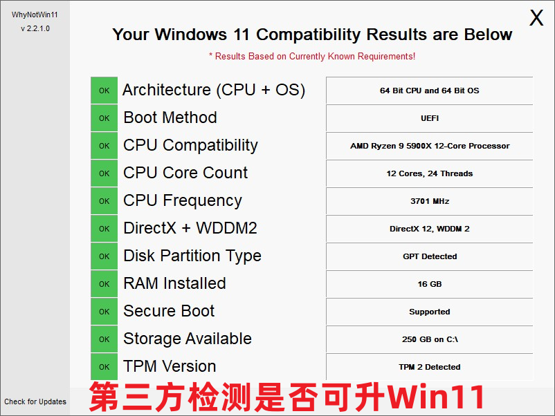 尝试使用第三方测试软件,例如广泛使用的允许更新的“为什么不是Win11”软件。