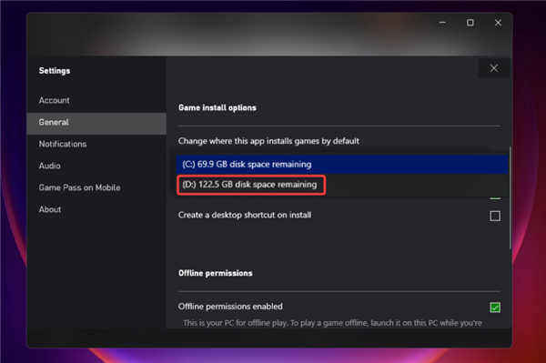 修改 Xbox 应用程序的存储选项 。