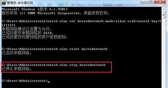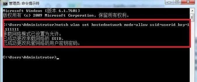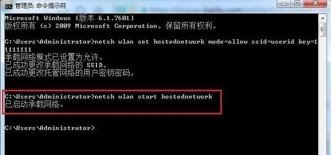 第三步是发射指令提示输入命令,“netsh wlan start hostednetwork”,启动承载网络,启动手机的 wlan,将发现一个称为“Serid”的网络。在此点, 请输入新安装的密钥 " 11 " 。