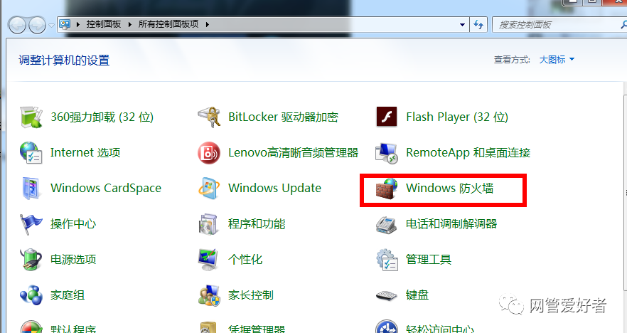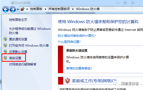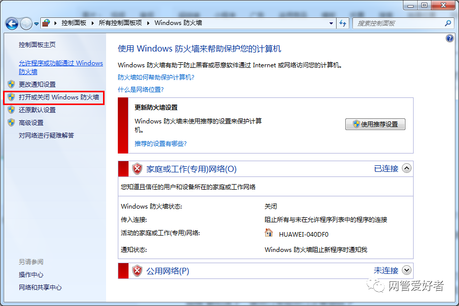 1. 打开Windows防火墙,并如图所示,单击窗口防火墙左侧的核定程序或功能: