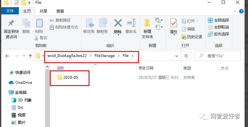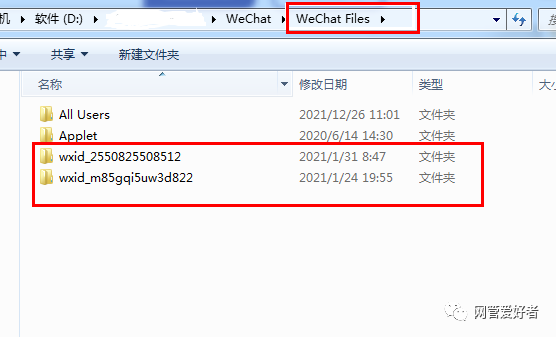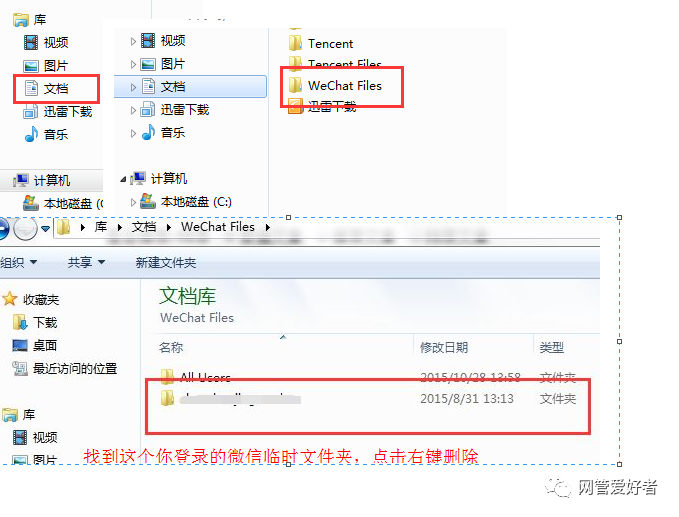 2. 查找通常在C或D中的WeChat文件文件夹。 应适当识别或删除临时文件的早期登录。