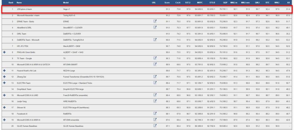 1月5日, 全球天然语言治疗领域最高级的GLUE考试在最新发行的GLUE中推出。与悉尼大学、武汉大学和北京航空和航天大学合作。Weaver Vega v1模型获得总平均91分,位于名单之首。自然语言在技术世界历史上首次被理解。微软公司、脸书公司、斯坦福大学和学院团队等公司能够克服同样的挑战。