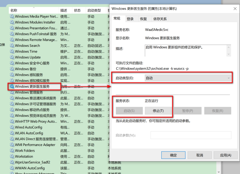 sc start WaaSMedicSvc