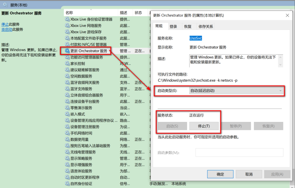 4. 启动服务:更新自动(延迟启动)的编织机服务