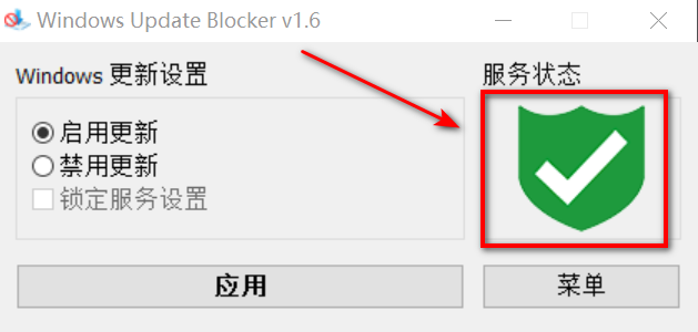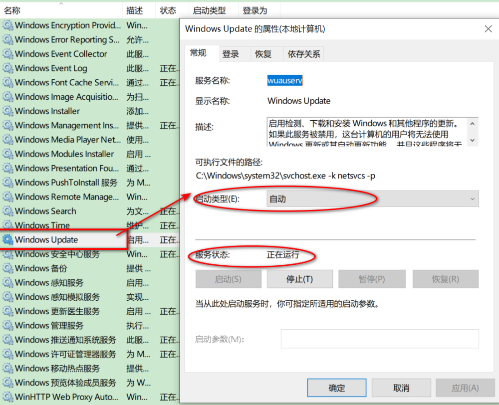 2. 服务状态通常是绿色的,标志更新服务已投入运行。