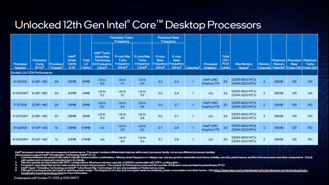 具体到产品,解锁的多频 K 最初列在第12代冷却桌面 CPU 中。K-9-12900、K-7-12700、K-5-12600及其无核对应方。这是Z690芯片组的主要板块的组合它致力于为DY发烧的朋友和赌博玩家提供杰出的表演。